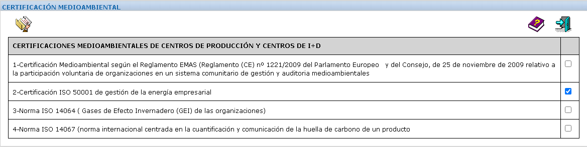 | Cumplimentación de Datos Relativos a Certificaciones Medioambientales |