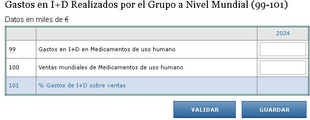 | Cumplimentación de Datos Investigación y Desarrollo (Farmacia) |